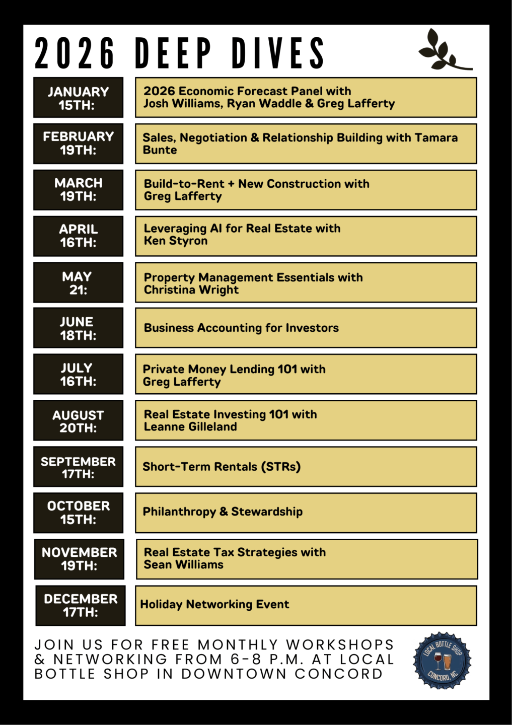 Led by industry veterans with decades of experience, these interactive sessions are designed for anyone from the completely new to the seasoned investor. It's your chance to learn directly from the pros, gain valuable insights and strategies you can put into action, and connect with a network of like-minded individuals all fueled by a passion for real estate success. Come explore the exciting world of real estate investing, one deep dive at a time!
